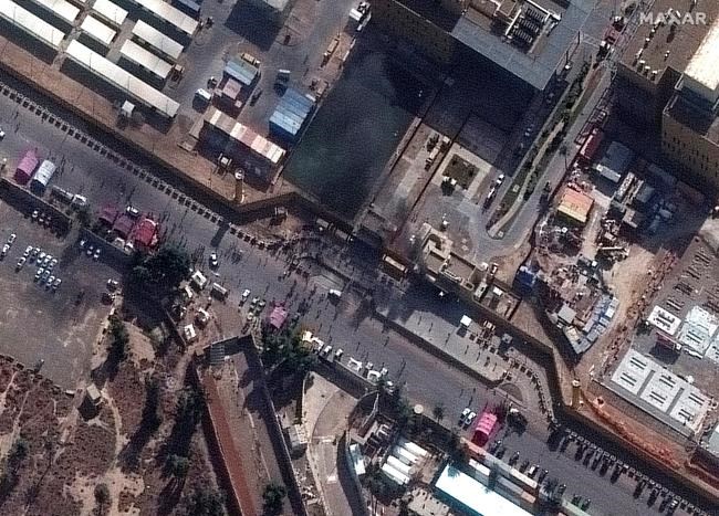 The protesters set up a tent camp overnight and on Wednesday set fire to the reception area and hurled stones at U.S. Marines guarding the compound, who responded with tear gas. There were no injuries on either side and no American staff were evacuated from the compound.
