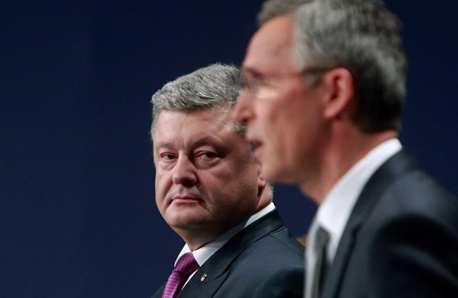 NATO Secretary-General Jens Stoltenberg and Ukraine’s President Petro Poroshenko held a news conference following Poroshenko’s meeting with the leaders of NATO member states Saturday, the second day of the alliance’s summit in Warsaw.