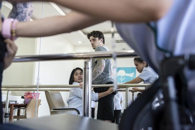 AIRDRIE, Alta. – A hockey player paralyzed in a bus crash has been working hard since undergoing spinal surgery in Thailand late last year and it’s getting him closer to his dream of making the national sledge hockey team.
