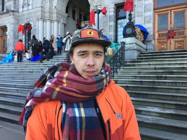 An Indigenous youth spokesman told about 300 people gathered at the B.C. legislature Saturday that RCMP presence in the Wet’suwet’en territories represents an armed invasion.