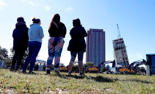 Dozens of people gathered northeast of the Texas city’s downtown to watch as a crane was used to batter the former Affiliated Computer Services building.But the developer now says the demolition may take days.