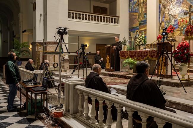 VATICAN CITY – Pope Francis celebrated Palm Sunday Mass in the shelter of St. Peter’s Basilica without the public because of the coronavirus pandemic, while parish priests elsewhere in Rome took to church rooftops and bell towers to lead services so at least some faithful could follow the familiar ritual.