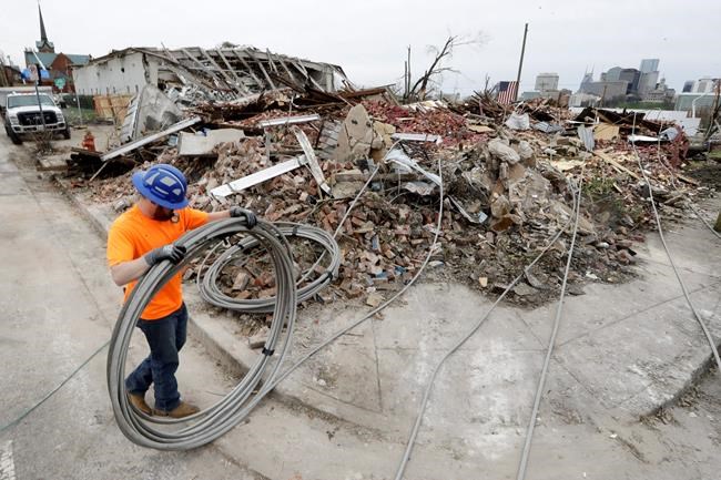 The storm claimed its first victim in Benton County, about 90 miles (145 kilometres) west of Nashville. The first tornado formed at 12:32 a.m. on the western edge of Nashville and crossed through three counties, according to the weather service, hitting EF-3 intensity three times over its 53-mile (85-kilometre) course. An EF-3 tornado is categorized as “severe,” with winds up to 165 mph (266 kph).