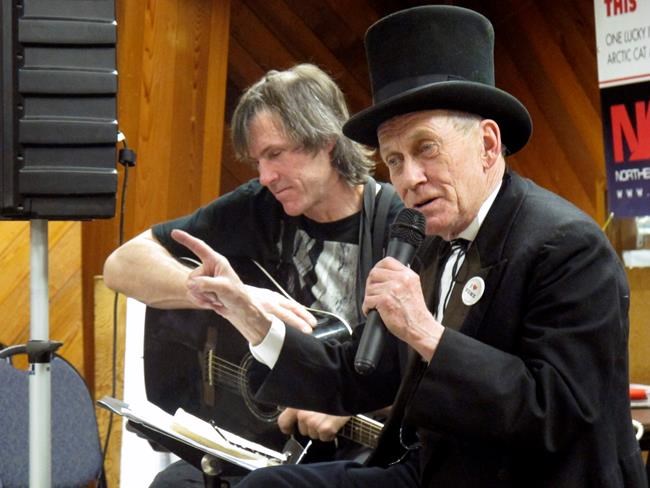 Every March, Beneville would also entertain bored volunteers waiting for mushers in the Iditarod Trail Sled Dog Race to arrive at the finish line in Nome. He would don a top hat and tails, and read the poetry of Robert Service to volunteers crowded inside the city’s mini convention centre. He also distributed “I Love Nome” buttons wherever he went.