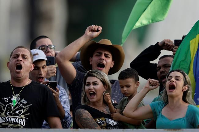 Among the protesters Sunday were members of “the 300 from Brazil,” a group of fierce Bolsonaro supporters who have been camping outside the presidential offices to defend the president against a possible coup since the beginning of May.