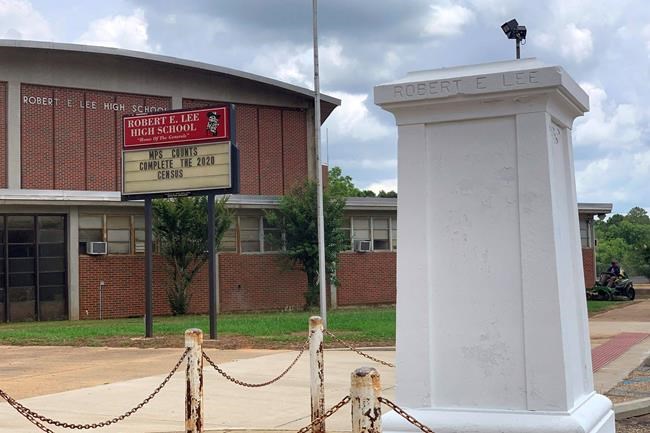In Birmingham, where Rudolph lives, the graffiti-covered, pocked base of a massive Confederate monument was all that remained Tuesday after crews dismantled the towering obelisk and trucked it away in pieces overnight. Other symbols came down elsewhere, leaving an empty pedestal in Virginia and a bare flagpole in Florida.