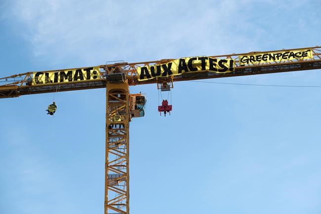 The group said in a statement that four climbers mounted the huge crane, about 80 metres (260 feet) high, soon after dawn and unfurled banners with such phrases as “Climate: Time to Act.”