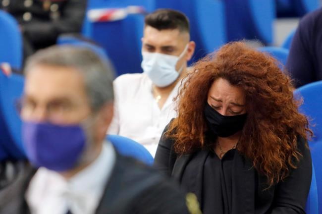 The Americans, like everyone else in the courtroom wearing face masks in accordance with anti-COVID-19 laws in Italy, turned to watch the commotion.