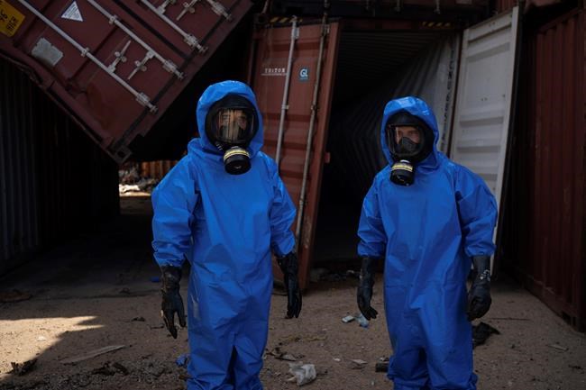 “We noted the presence of containers with the chemical danger symbol. And then noted that one of the containers was leaking,” he told The Associated Press in a TV interview on Monday.