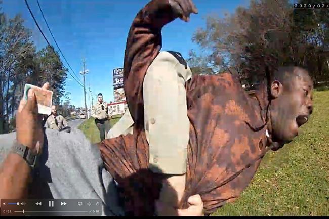 Police body camera video of the Feb. 8 encounter in Valdosta, near the Georgia-Florida state line, shows Smith handing his driver’s license to a Black officer and talking co-operatively when Wheeler walks up behind him, wraps him in a bear hug and slams him face-first to the ground.