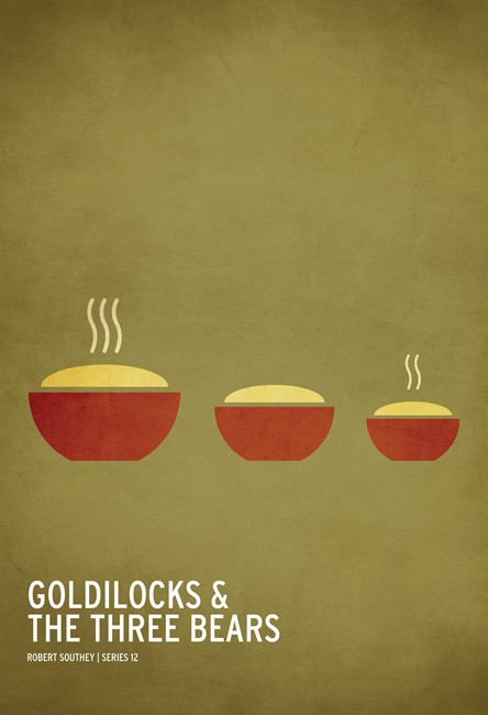 For a contemporary space, consider Chicago artist Christian Jackson’s minimalist versions of classic fairy tales: Little Red Riding Hood is evoked by a copse of trees and a flash of red cape; the Goldilocks print shows three bowls of oatmeal, each a different size; Three Little Pigs consists of a sprig of straw, a twig and a brick. While each is rendered in muted hues, the spare imagery packs graphic punch. (www.squareinchdesign.com )