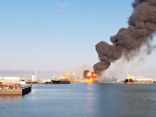 The explosion happened at about 8 a.m. Friday when the vessel struck a submerged pipeline, according to the Coast Guard, and Port of Corpus Christi officials said it was a propane pipeline.