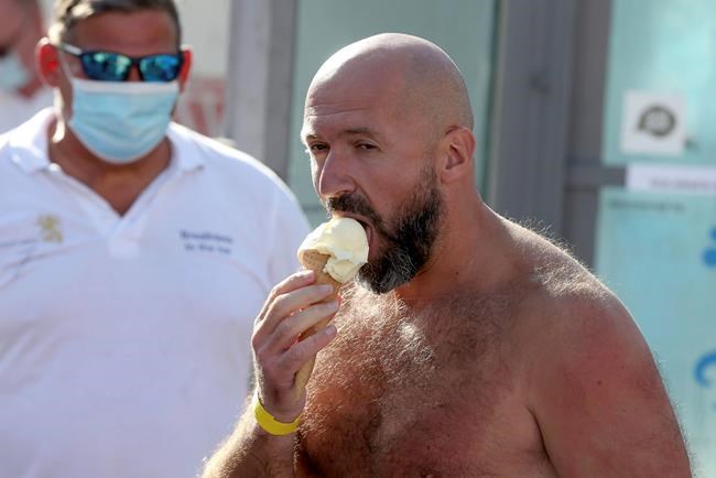 MELK, Austria – An Austrian man beat his own record for the longest full body contact with ice cubes on Saturday.
