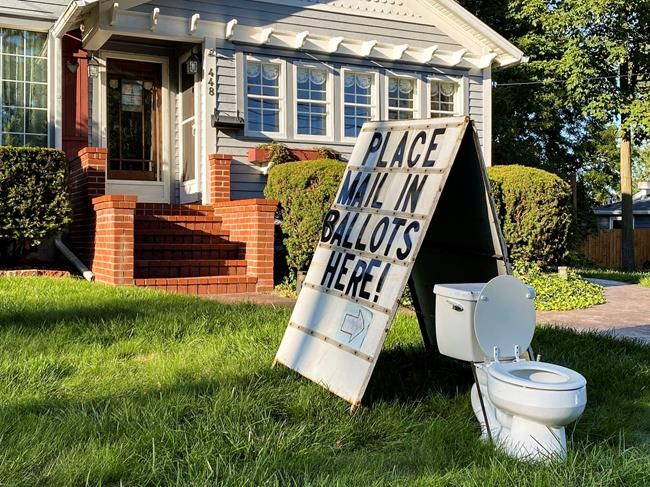 The election clerk in Ingham County informed police about a toilet on the front lawn of a home in Mason, near Lansing. A sign said, “Place mail in ballots here.”