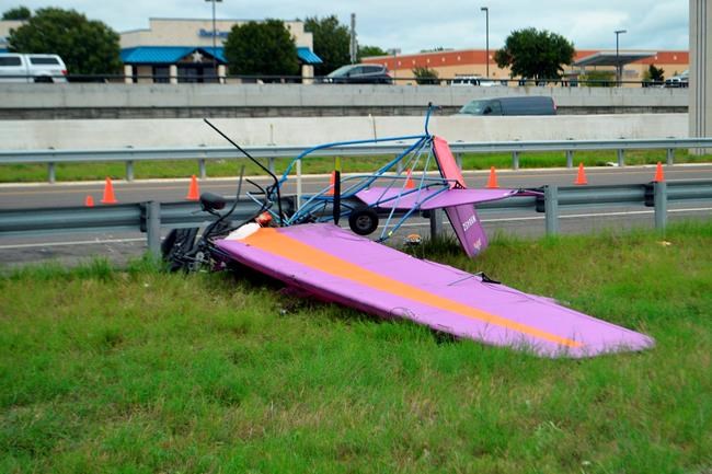 HARKER HEIGHTS, Texas – Two men died after their ultralight aircraft crashed on an interstate in front of a hospital in Central Texas on Thursday, authorities said.