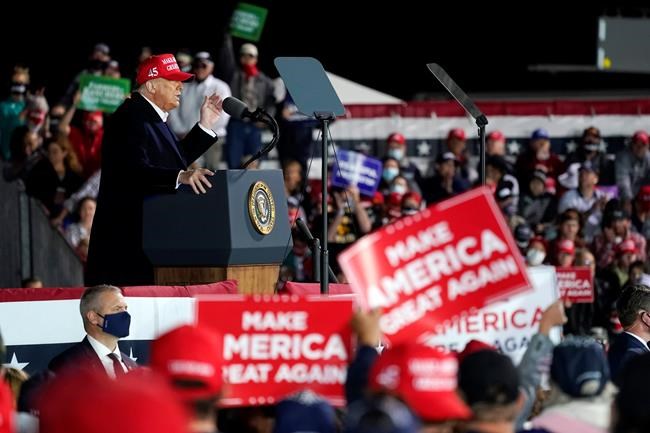 Trump tested positive for the coronavirus Oct. 2. He spent three days at the Walter Reed military hospital. He resumed public appearances over the weekend and resumed campaign travel Monday.
