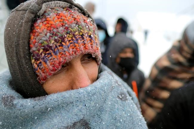 BIHAC, Bosnia – Hundreds of migrants were stranded Saturday in a squalid, burnt-out tent camp in Bosnia as heavy snow fell in the country and winter temperatures suddenly dropped.