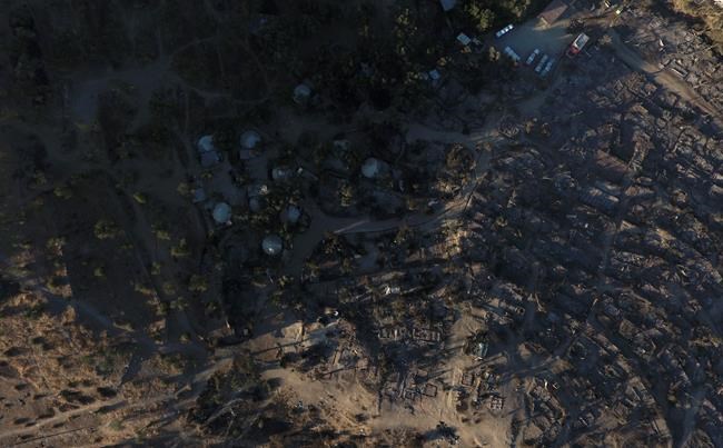 Flames continued to eat away at the remnants of the burned-out camp Thursday, sending black smoke over destroyed container homes and the charred adjacent hillside, where thousands had lived in a tent city.