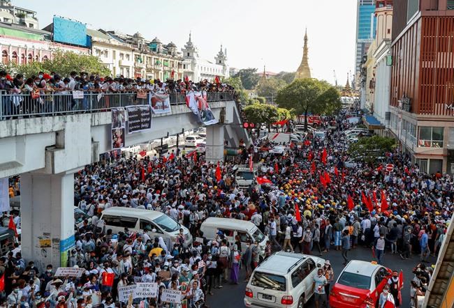 The protesters in Myanmar are demanding that power be restored to Suu Kyi’s deposed civilian government. They’re also seeking freedom for her and other governing party members detained by the military after it blocked the new session of Parliament on Feb. 1.