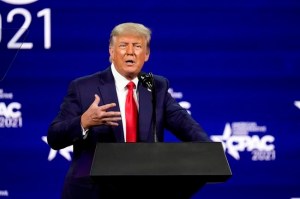 Wearing a white suit just as Hillary Clinton and Kamala Harris did for significant political speeches, Fonda said, “We are a community of storytellers, aren’t we, and in turbulent, crisis-torn times like these, story-telling has always been essential.”