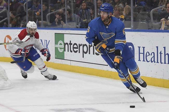 ST. LOUIS (AP) — Charlie Lindgren made 22 saves and Pavel Buchnevich had a goal and assist, leading the St. Louis Blues to a 4-1 win over the slumping Montreal Canadiens on Saturday night.