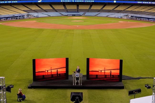 SACRAMENTO, Calif. – Standing alone in centre field of an empty Dodger Stadium, California Gov. Gavin Newsom cast himself as a bold if imperfect leader and his state as on the cusp of a new day.