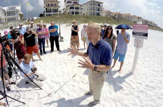 SANTA ROSA BEACH, Fla. – Democratic U.S. Sen. Bill Nelson stood in front of a “No Trespassing” sign Friday and criticized Republican Florida Gov. Rick Scott for signing a bill that voided a Panhandle county’s ordinance that allowed the public to use otherwise privately owned beaches.