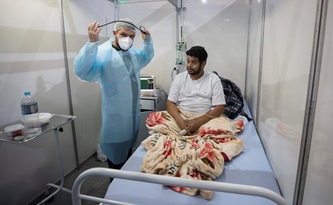 Everton Godoy, 34, is among these younger COVID-19 patients. He was laid up in a field hospital’s infirmary April 13 in the small city of Ribeirao Pires on Sao Paulo’s outskirts and said he believes he was infected while working at a produce shop.