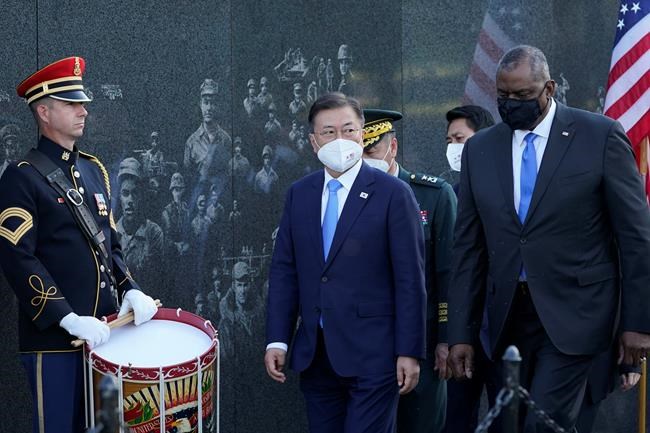 Biden paid tribute to the “long history of shared sacrifice” by the two allies. His formal talks with Moon in the afternoon ran long, Biden said in earlier remarks, because “I enjoyed the meeting so much that it caused us to move everything back.” He said his staff interrupted repeatedly to warn they were over time.