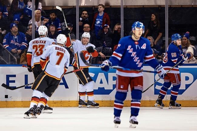 The Rangers ended Calgary’s three-game winning streak. New York had lost 10 of its last 13 games to fall out of an Eastern Conference playoff spot.