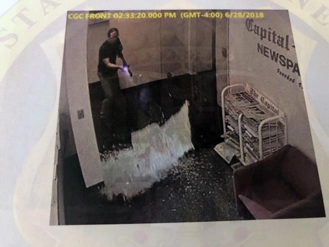 Jurors also saw a security video of the attack, as well as an officer’s body camera video, showing Ramos emerging from under a desk in the newsroom and police officers later leading him out.