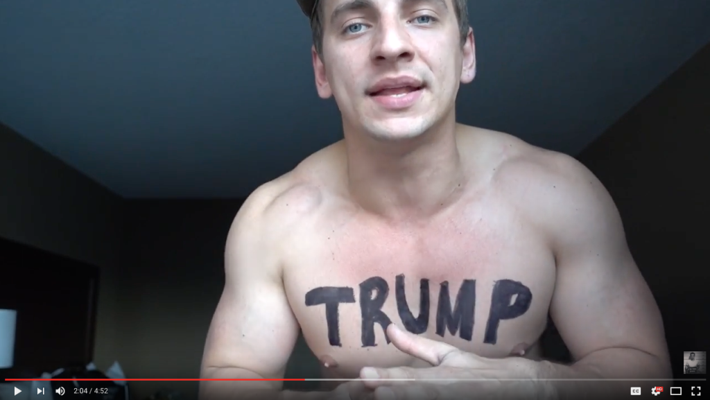 Vitaly wrote Trump Sucks on his chest and ran across the court topless interrupting a NBA playoff game between the Golden State Warriors and the Cleveland Cavaliers.