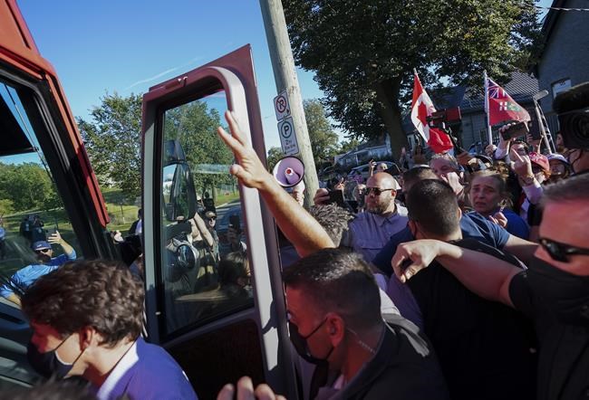 Trudeau said he will follow the advice of the RCMP on whether events can proceed or not. A Liberal rally planned in Bolton, Ont., on Aug. 27 was cancelled on the advice of the RCMP when it was felt safety could not be guaranteed.