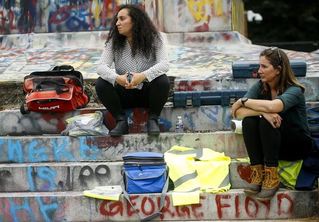 RICHMOND, Va. (AP) — Workers returned Friday to the site in Richmond where a statue of Confederate Gen. Robert E. Lee stood for more than a century, but won’t resume their search for a 134-year-old time capsule state officials believe is buried in the statue’s enormous granite pedestal.