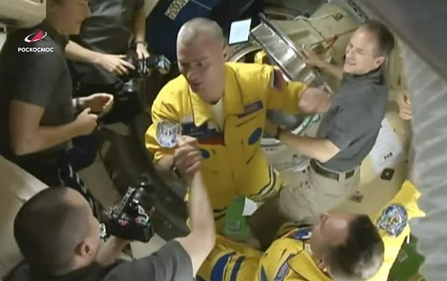 WASHINGTON (AP) — When three Russian cosmonauts arrived at the International Space Station wearing yellow flight suits with blue accents, some saw a message in them wearing the colors of the Ukrainian flag. They shot that down on Saturday.