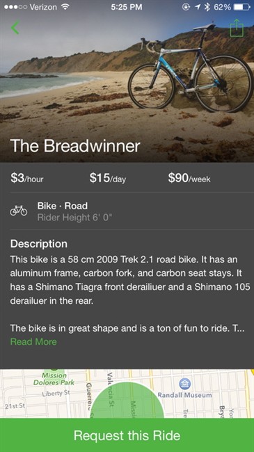 Spinlister acknowledges that finding a bike may be more difficult in some areas where the site isn’t well-known. “I can see someone searching, not seeing what they need… and then we have no option for them so they don’t rent a bike,” Batey said.