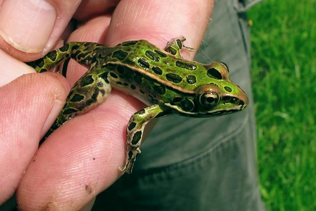The northern leopard frog lays its eggs in the grassy flood plains of the creek; normally many of those eggs would have dehydrated as fields dried out, but that didn’t happen this year. Then a warm spell sped up the development of the young tadpoles, which transformed into frogs just as the fields were drying out, according to Andrews.