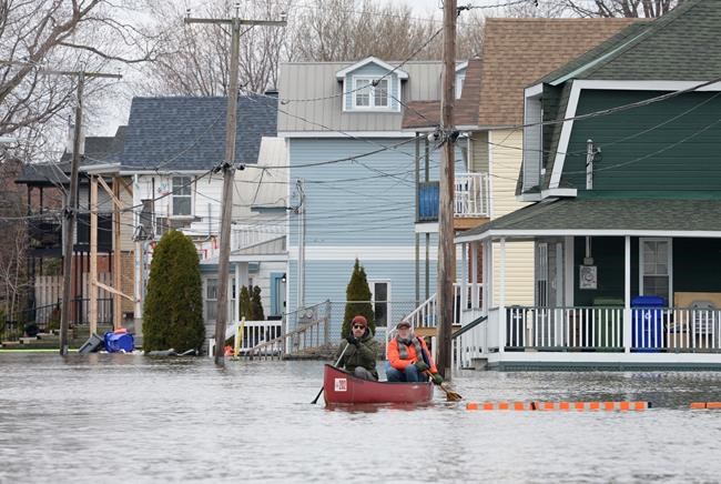 In Ste-Marthe-sur-le-Lac, northwest of Montreal, residents had to resort to using boats to visit their stranded homes after the Lake of Two Mountains burst through a man-made clay and grass dike for the first time in decades.