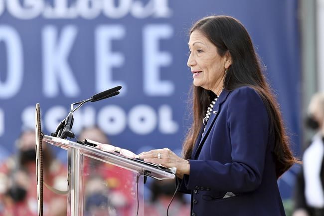 Haaland made her remarks on boarding schools in highlighting the work she and others in the Interior Department have done since she took over the agency a year ago. Haaland, of Laguna Pueblo in New Mexico, is the first Native American ever to hold the post — raising the hopes of Indian Country for significant changes in an agency that has broad oversight of tribal affairs.