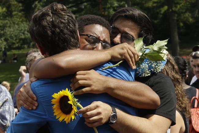 Clutching flowers at Bethesda Fountain, the tearful group honoured Kyle Jean-Baptiste, the first African-American and youngest person to play the role of Jean Valjean in “Les Miserables” on Broadway.