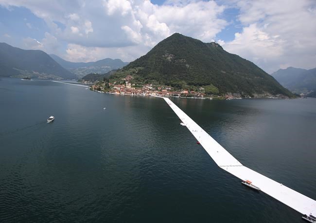 “The Floating Piers” is expected to draw half a million visitors during the longest days of the year to northern Italy’s least-known big lake. That is considerably fewer than the 5 million who visited Christo’s and his late wife Jeanne-Claude’s famous “Wrapped Reichstag” in Berlin in 1995 and the 2 million who walked through their work “The Gates” in New York City’s Central Park in 2005, due largely to the relatively rural location.