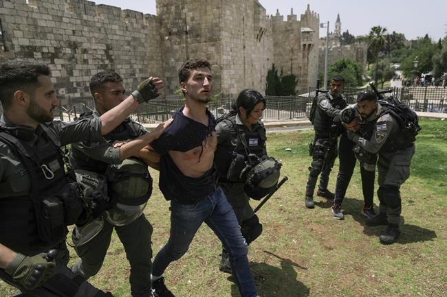 The crowds, who were overwhelmingly young Orthodox Jewish men, were celebrating Jerusalem Day — an Israeli holiday that marks the capture of the Old City in the 1967 Mideast war. Palestinians see the event, which passes through the heart of the Muslim Quarter, as a provocation. Last year, the parade helped trigger an 11-day war with Gaza militants, and this year’s march drew condemnations from the Palestinians and neighboring Jordan.