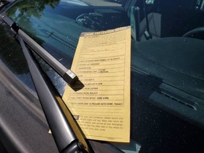 Lyons posted 22 notices for “possessions or money in view,” on the windows of vehicles.