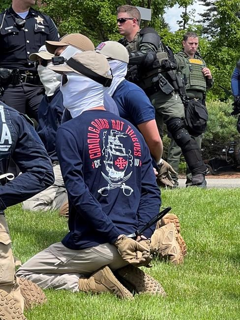 Videos of the arrest posted on social media show the men kneeling on the grass with their hands zip-tied behind their backs.