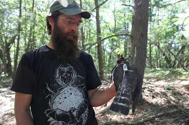 GLEN ARBOR, Mich. (AP) — In a forest near Lake Michigan, two scientists attached a backpack tracking device to a merlin they’d lured into a net. The mission: help prevent the predatory species from gobbling up piping plovers — highly endangered shorebirds that nest nearby.