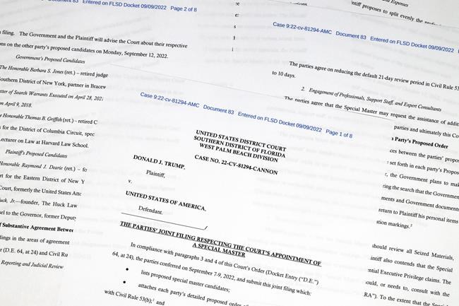 WASHINGTON (AP) — The Justice Department and Donald Trump’s legal team each proposed candidates Friday for the role of an independent arbiter in the investigation into top-secret documents found at the former president’s Florida home, but the two sides differed on the scope of duties the person would have.