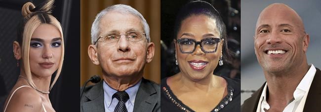 NEW YORK (AP) — Dr. Anthony Fauci, Oprah Winfrey, Ava DuVernay, Riz Ahmed, Dua Lipa, Andra Day and Dwayne “The Rock” Johnson all won honors Tuesday at the Webby Awards, which recognize the best internet content and creators.