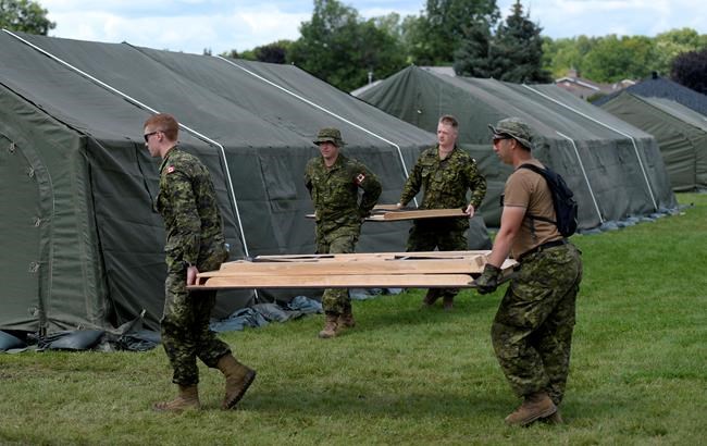 A tented camp being erected by the Canadian Forces neared completion Wednesday and will soon be able to house up to 500 people on the grounds of the Nav Centre, a privately run, non-profit, 28-hectare conference centre.