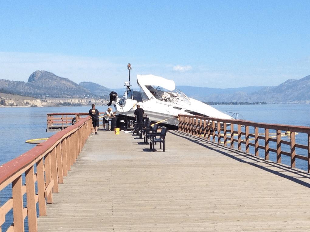 Large boat smashes into Kiwanis Walking Pier late Tuesday night