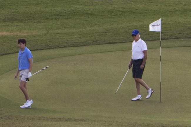 Biden and grandson Hunter, 16, played on the 18-hole course at the Buccaneer Beach and Golf Resort in the town of Christiansted on St. Croix. The course features spectacular views of the blue waters of the Caribbean Sea and the island’s coastline.